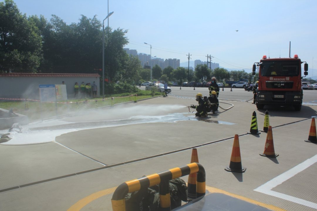 第二科目模擬油罐車卸油泄漏引發(fā)著火事故應(yīng)急救援綜合演練。卸油時(shí)油管脫落造成油品泄漏,靜電引發(fā)火災(zāi),加油站立即自救并報(bào)警,各應(yīng)急單位迅速聯(lián)動(dòng),消防救援大隊(duì)、120迅速趕到現(xiàn)場(chǎng)搶救。