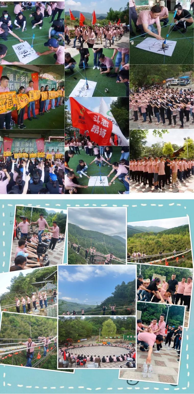 本次戶外團建活動得到了公司領導的高度重視,綜合管理中心精心策劃、認真準備,力爭呈現一場完美的團建活動。活動本著“體能冒險最小、心理超越最大”的原則,分別進行了團隊熱身、美福節拍、神筆馬良、急速60秒、高空挑戰橋及團建共贏圈等多個項目,通過進行一個個刺激且富有挑戰性的項目,使員工們切身感受溝通合作的重要性,提升了團隊合作的精神。員工們在鍛煉中學習、在體驗中改變,受益匪淺。活動過程中充滿歡聲笑語,現場氛圍極其活躍,各個項目都在專業教練認真的組織下井然有序的完成。