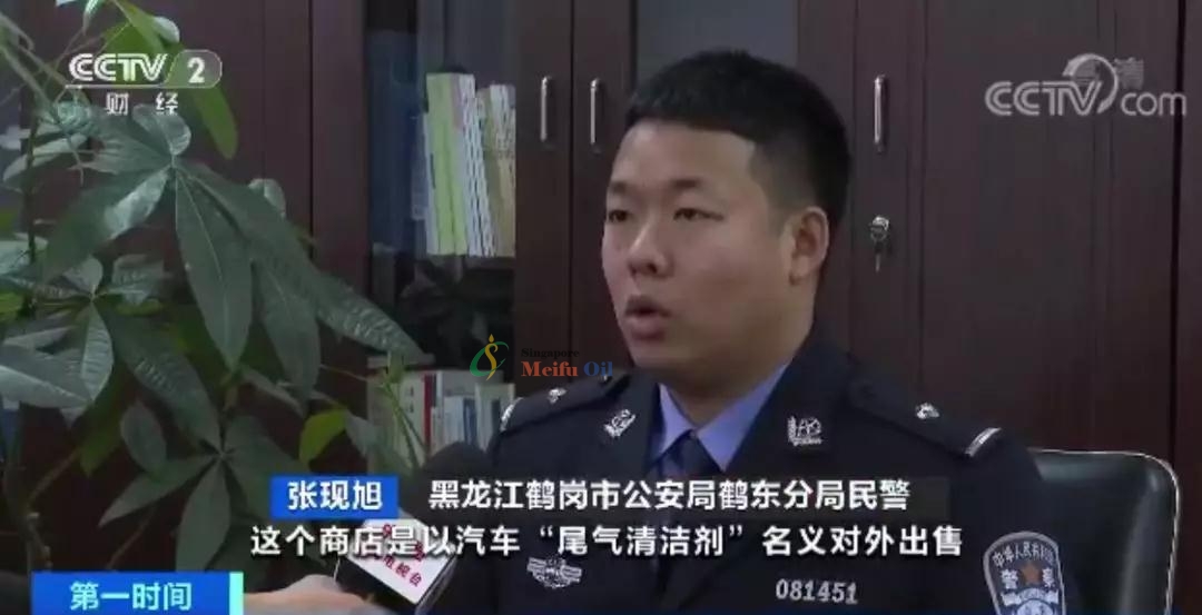 民警:我們通過秘密偵查、提取,將他售賣這種所謂的“尾氣清潔劑”,送到了質量技術監督局檢測中心進行了檢驗,檢驗顯示它的各項數值和92號汽油的數值是完全相符的。