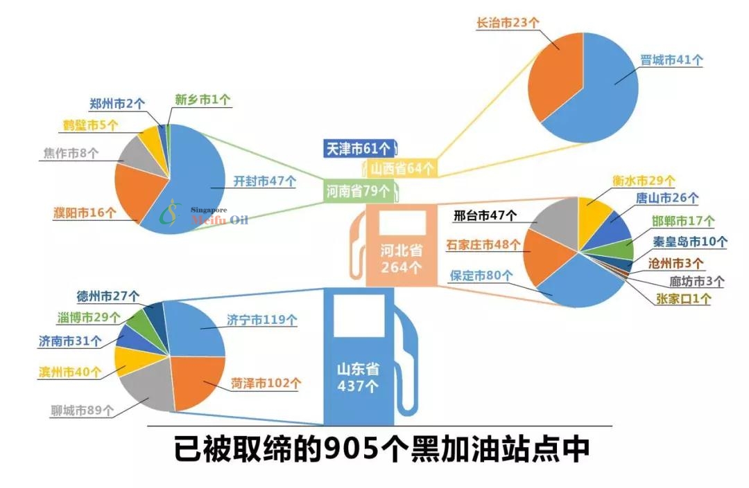 地方已取締的905個黑加油站點中,山東省取締黑加油站點數量占取締總數的48%,河北省占比29%、河南省占比9%、山西省占比7%、天津市占比7%。