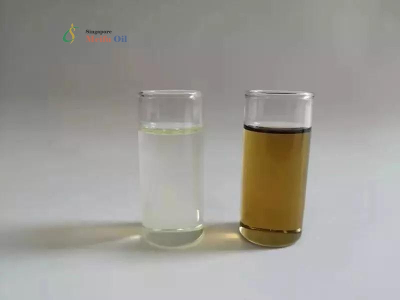圖左為合格柴油樣品,右為滄州市黃驊市南排河鎮歧口津海加油站超標902倍柴油樣品 來源:生態環境部官網