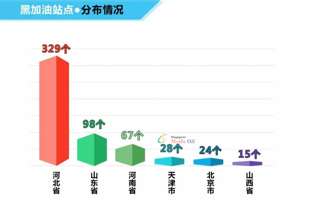 1.黑加油站點區域分布相對集中。561個黑加油站點中,河北省數量最多共329個、山東省98個、河南省67個、天津市28個、北京市24個、山西省15個。具體城市中,河北省邢臺市黑加油站點多達92個,石家莊、張家口、邯鄲、滄州市和河南省開封市、山東省菏澤市都有20個以上。北京市豐臺區、天津市薊州區、石家莊辛集市、邯鄲市成安縣、承德市寬城縣、濟南市長清區、開封市通許縣黑加油站點數量占所在城市總數的近50%。